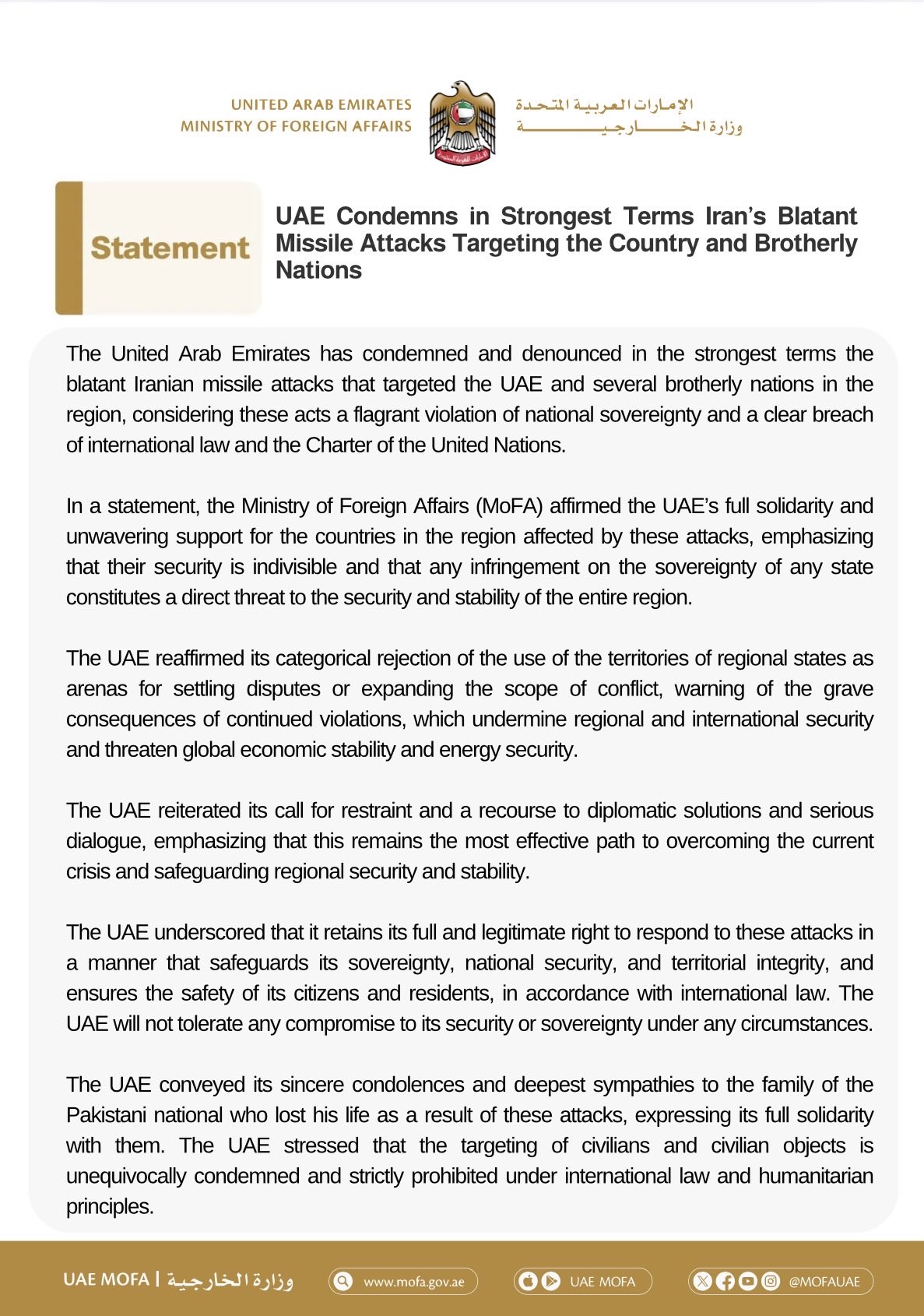 Iran’s cross-Gulf missile and drone salvos and threats to close Hormuz are reckless escalation that endanger civilians, regional stability, and global energy security, and must be deterred and defended against decisively.